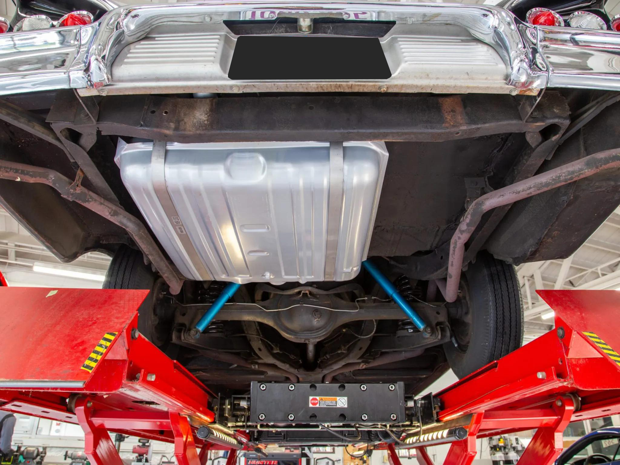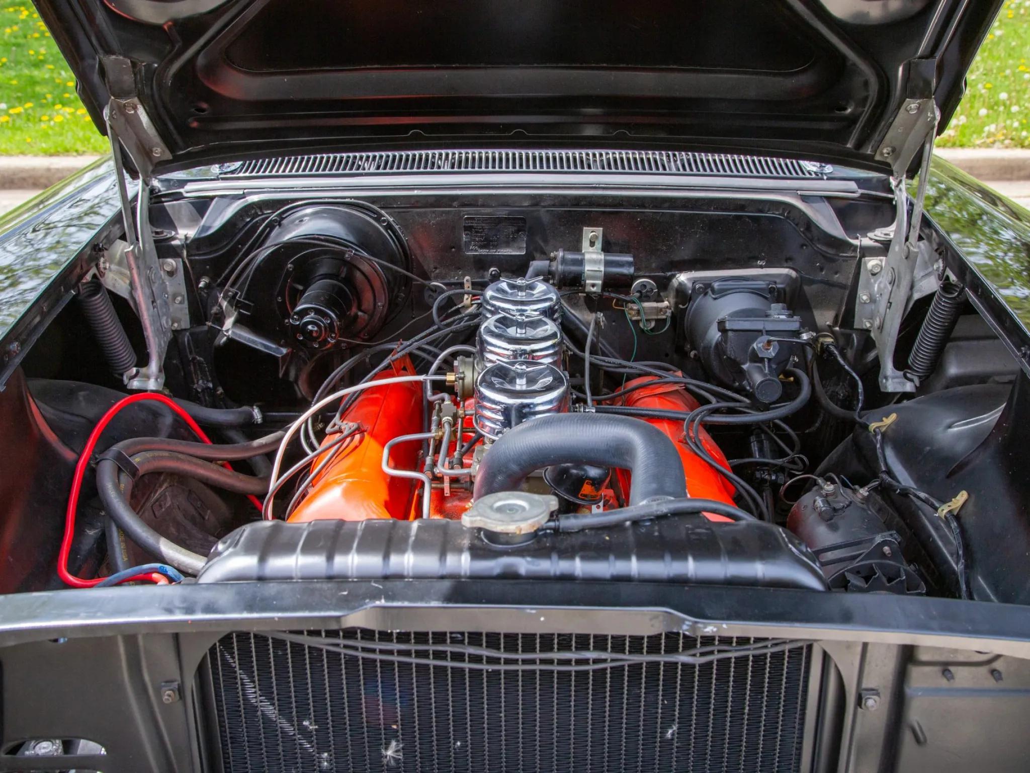 The car is equipped with power-assisted drum brakes on all four corners. The 348ci Super Turbo-Thrust V8 is fitted with three two-barrel carburetors and was rated at 280 horsepower and 355 lb-ft of torque. Recent work included replacing the fuel tank and front wheel cylinders, repairing the brake booster, performing a tune-up, and re-coring the radiator.