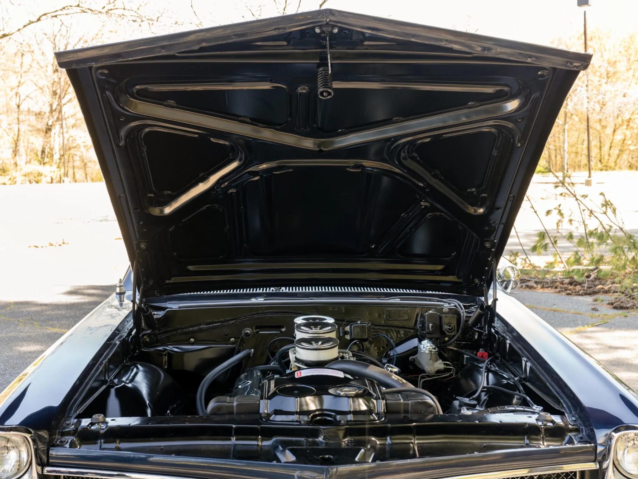 The 400ci V8 is equipped with a tri-power setup and was refinished in 2023. Additional work included installation of a Pertronix ignition system and replacement of the fuel tank, fuel pump, water pump, wiring harnesses, timing chain, and heater core.