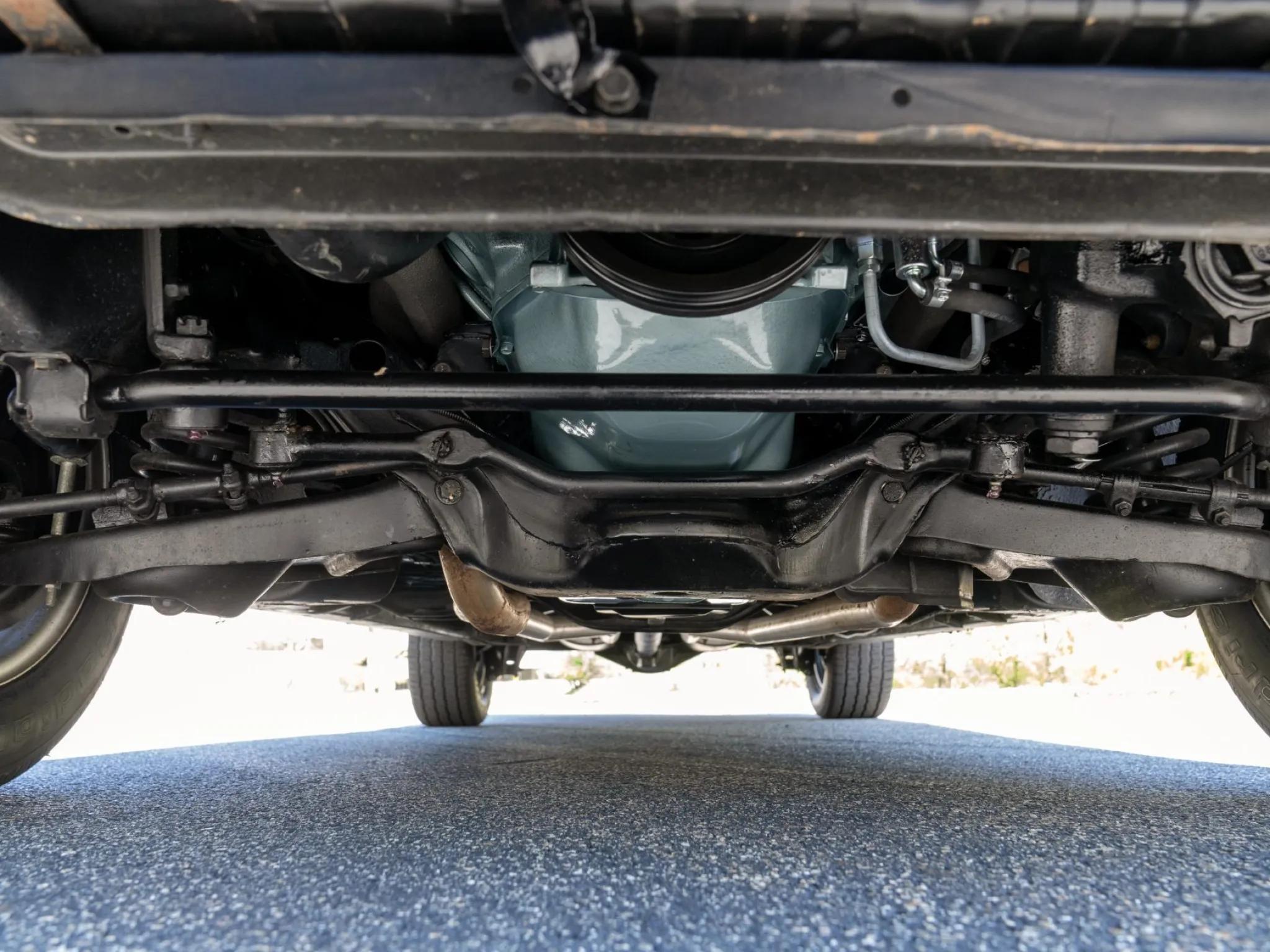 Rally II 15" wheels with chrome trim rings are mounted with 215/65 front and 245/60 rear BFGoodrich Radial T/A tires. Braking is handled by four-wheel drum brakes, and the brake components and rear shocks were replaced in 2023.