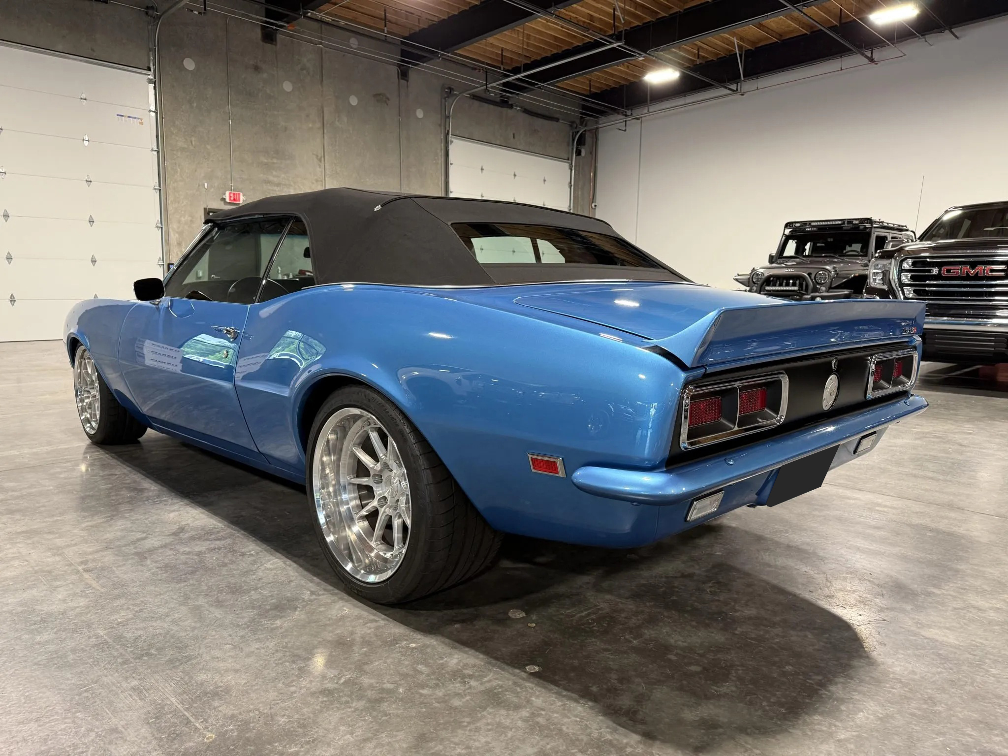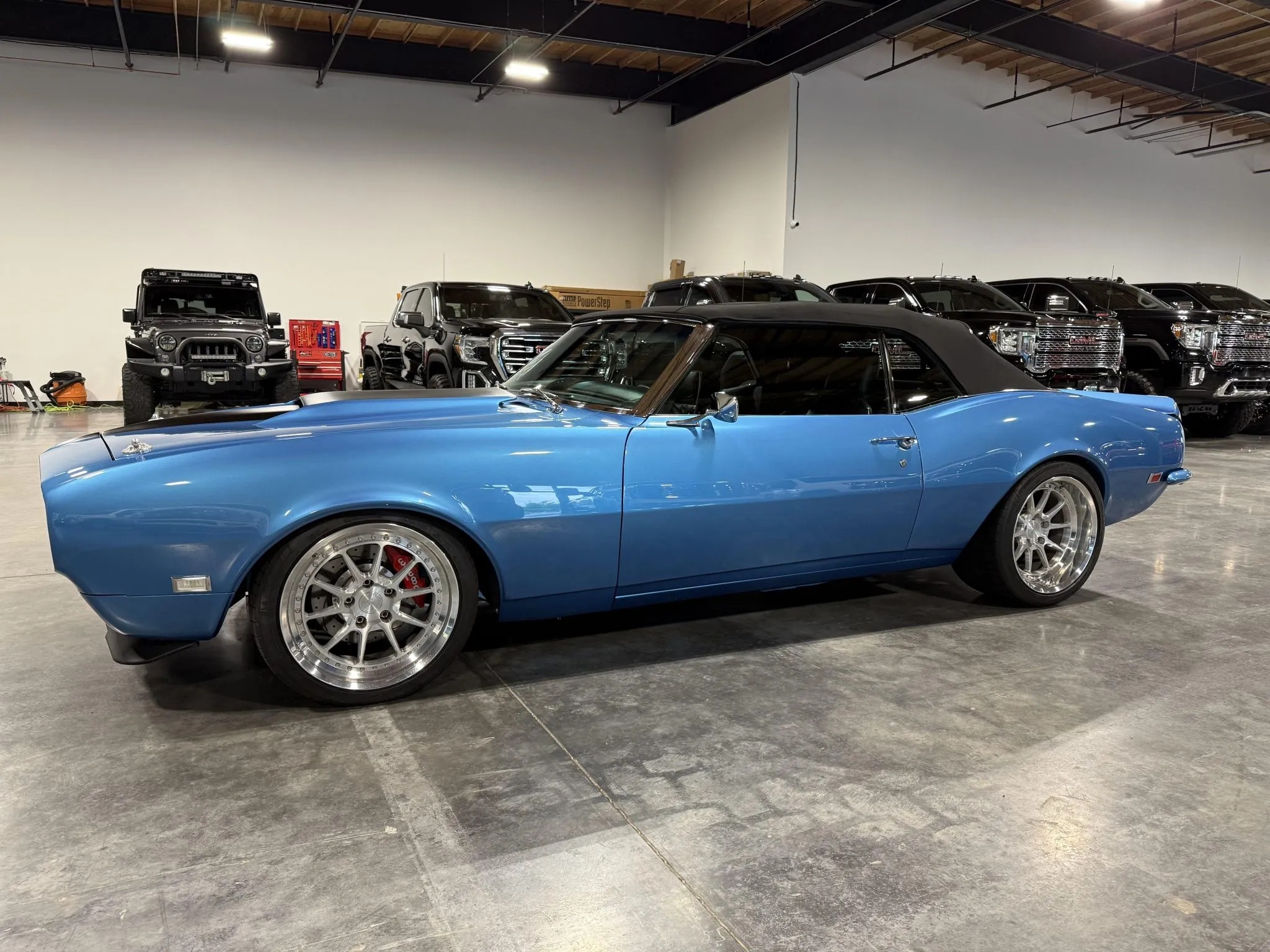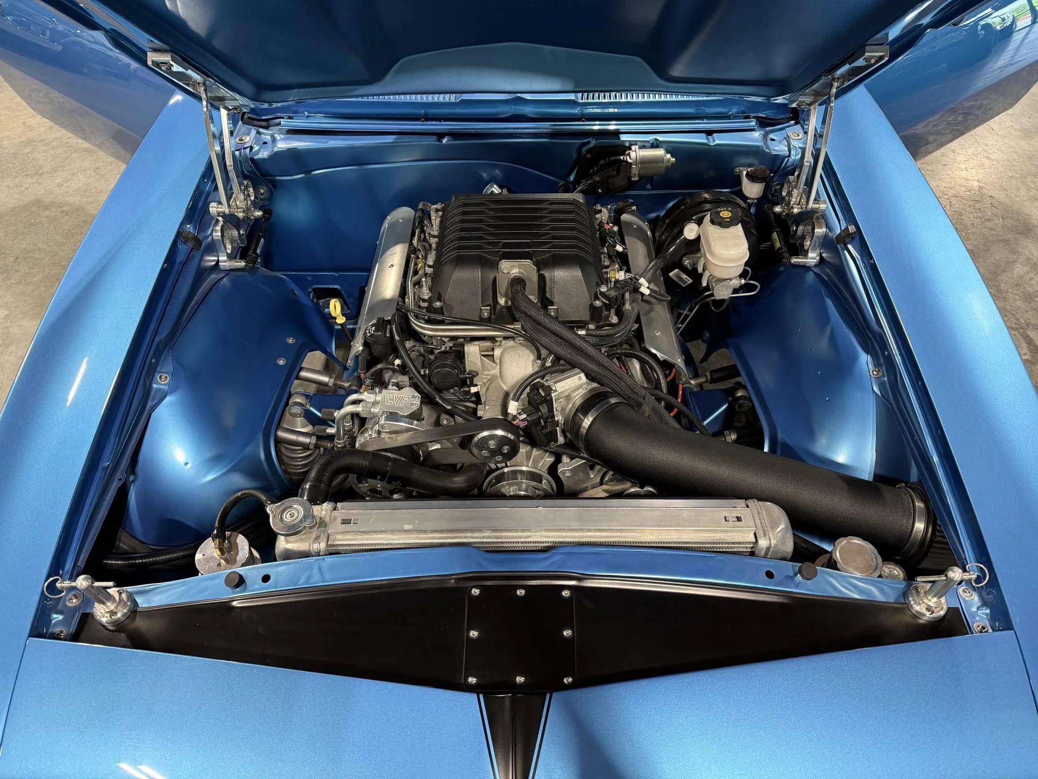 This 1968 Chevrolet Camaro convertible is powered by a supercharged 6.2-liter LSA V8 paired with a Tremec Super Magnum six-speed manual transmission and a Currie 9" rear axle with a limited-slip differential and 3.50:1 gears.