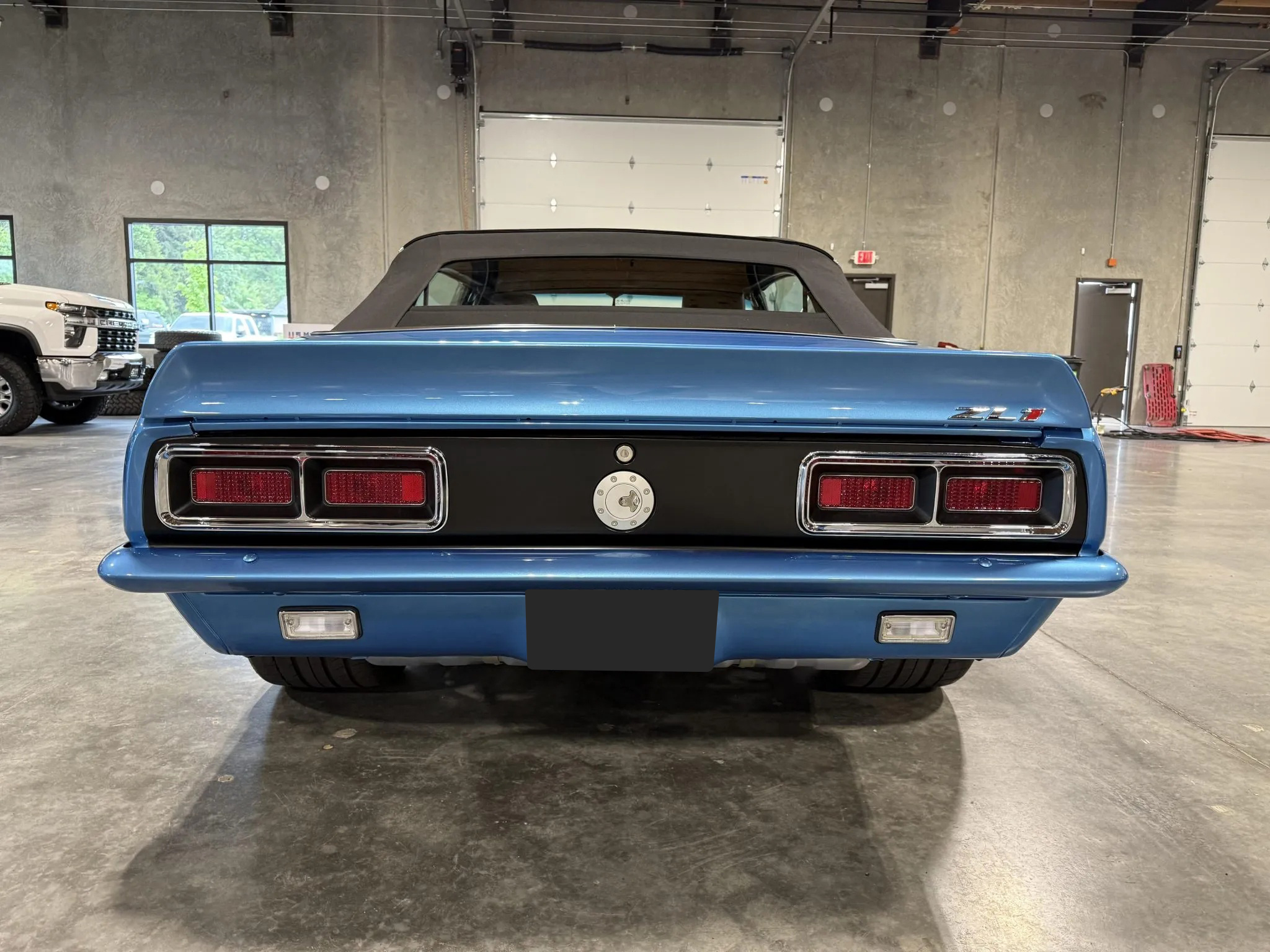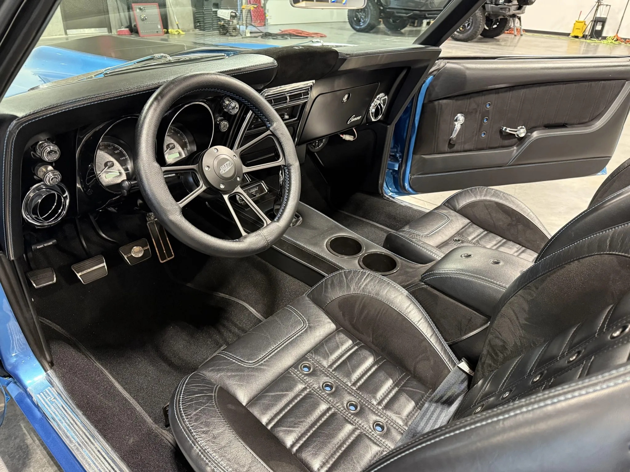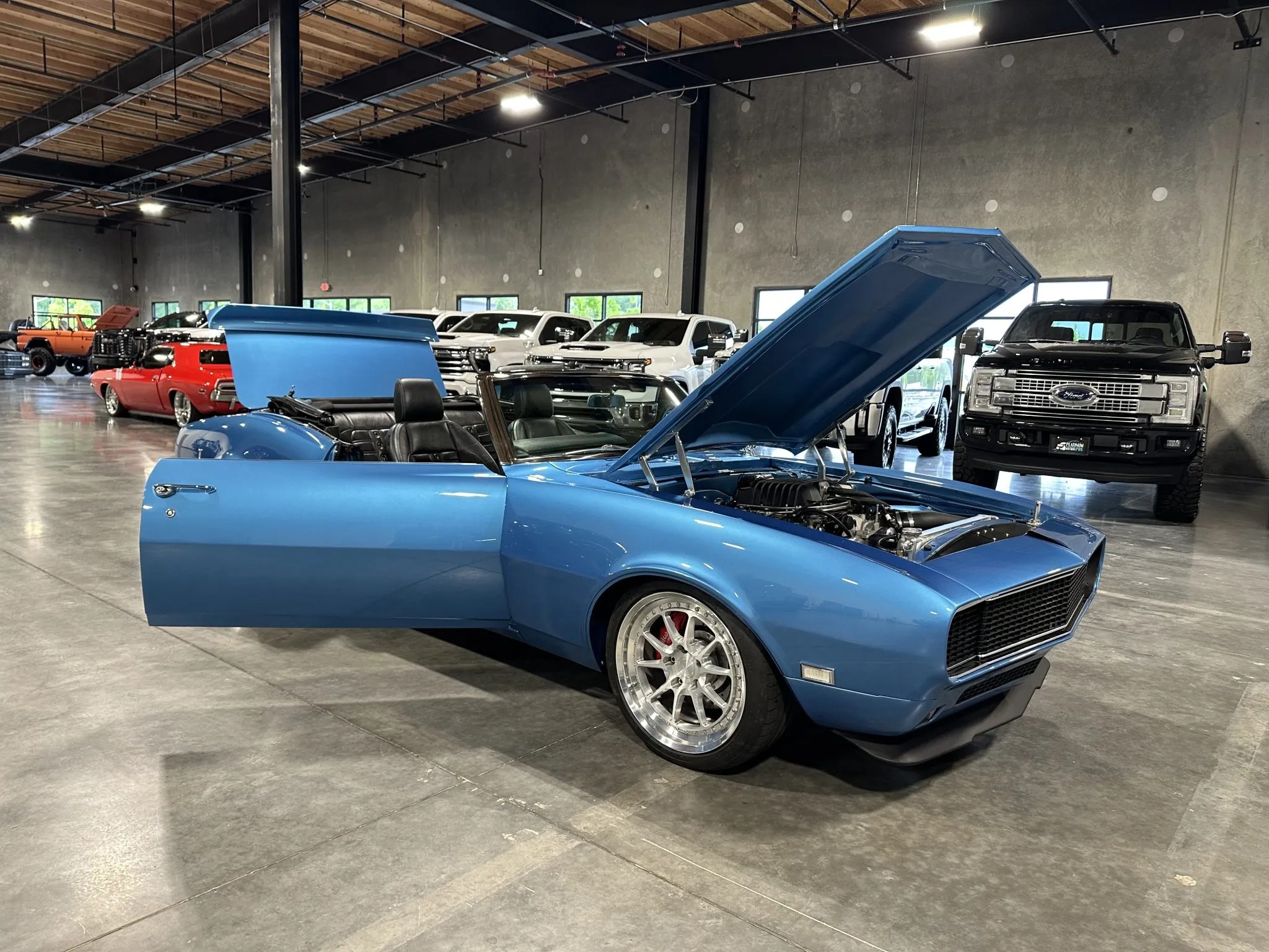 This 1968 Chevrolet Camaro convertible is powered by a supercharged 6.2-liter LSA V8 paired with a Tremec Super Magnum six-speed manual transmission and a Currie 9" rear axle with a limited-slip differential and 3.50:1 gears.