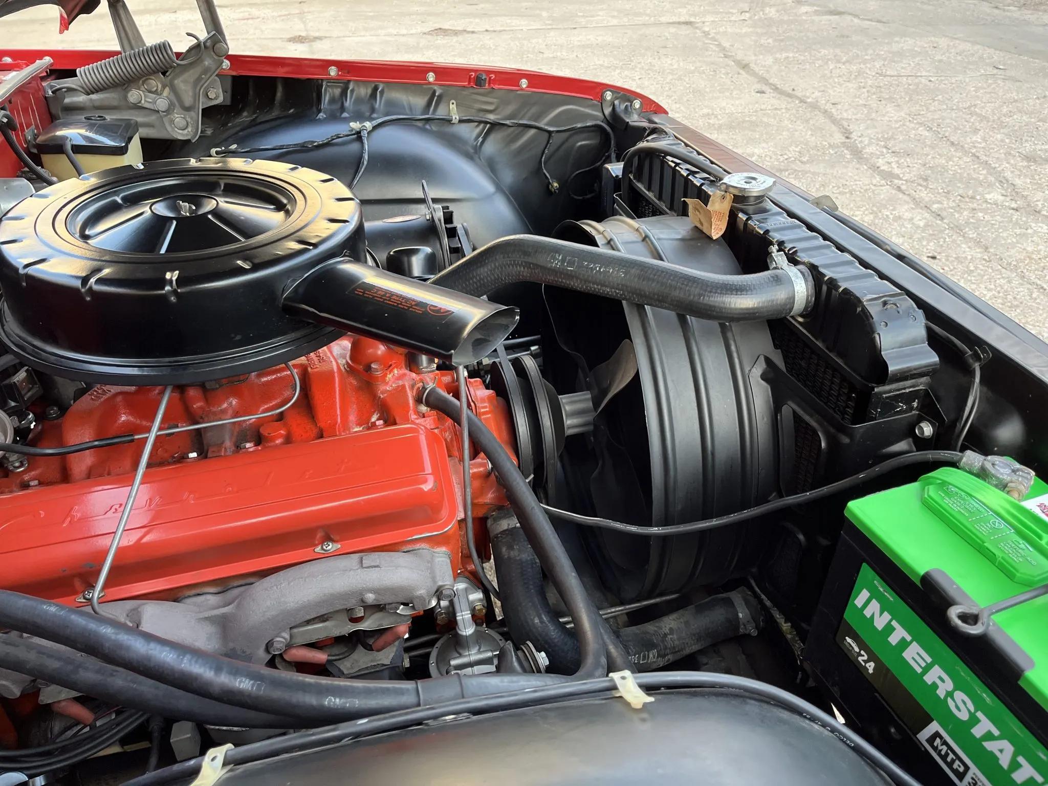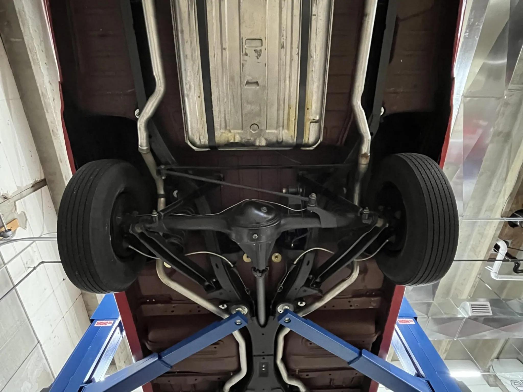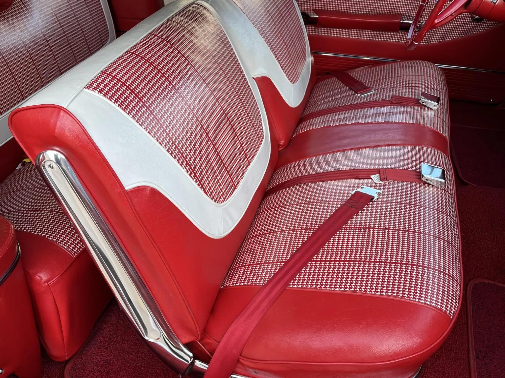 The 283ci V8 sends power to the rear wheels through a two-speed Powerglide automatic transmission. The car is equipped with power steering and drum brakes on all four corners.