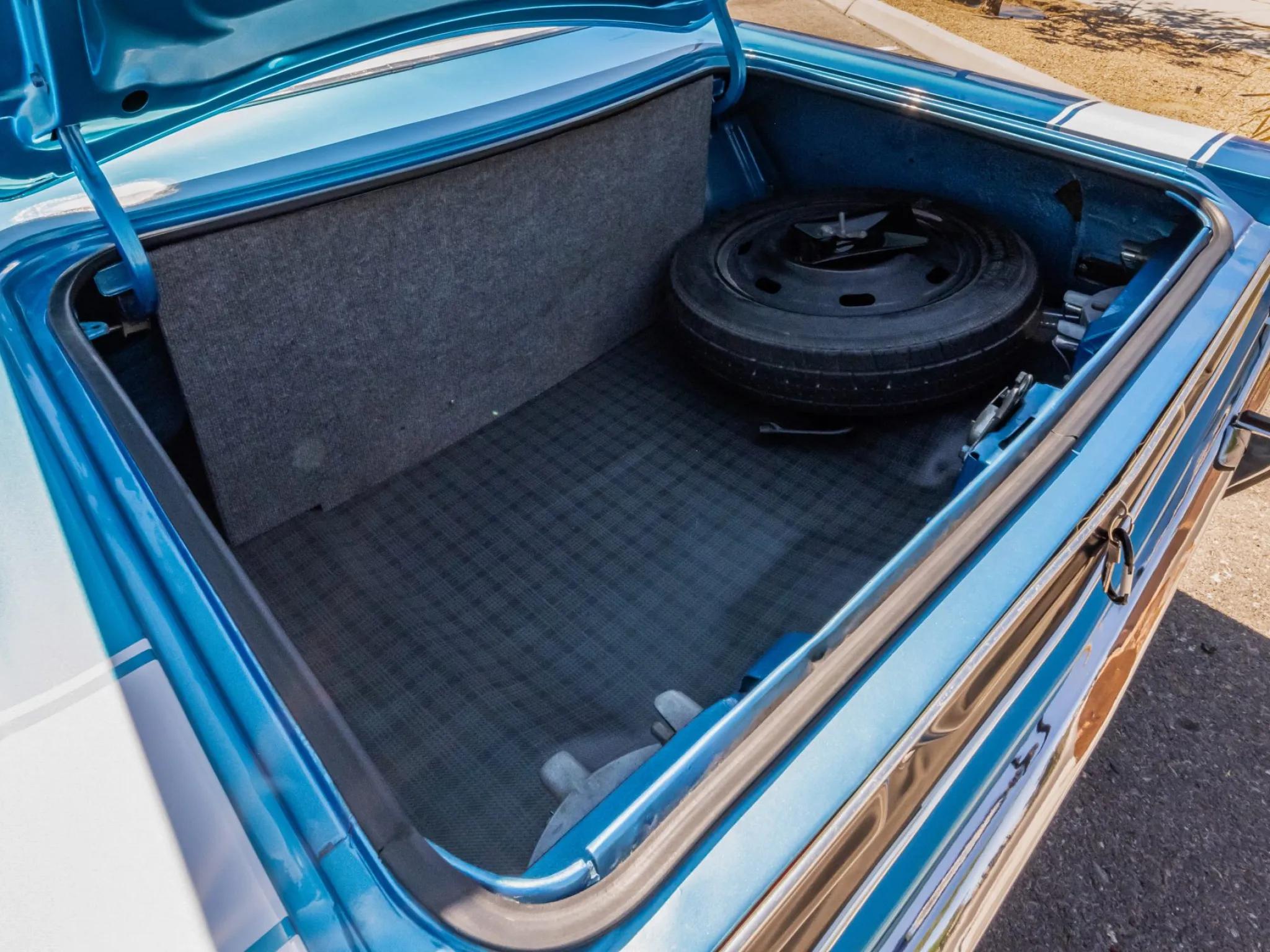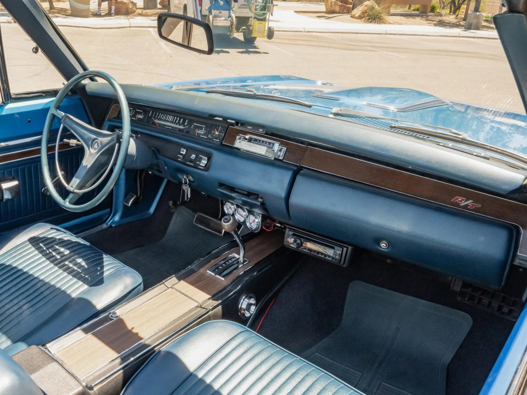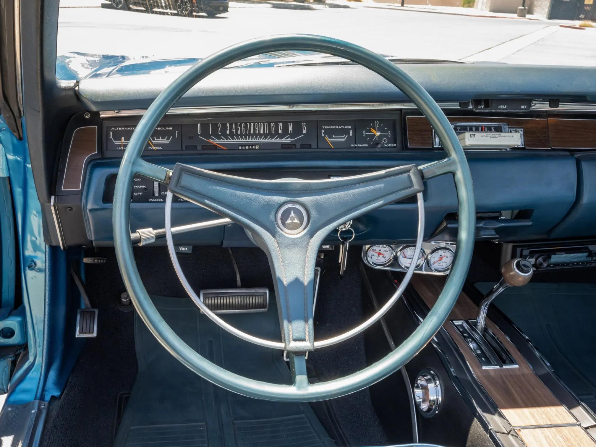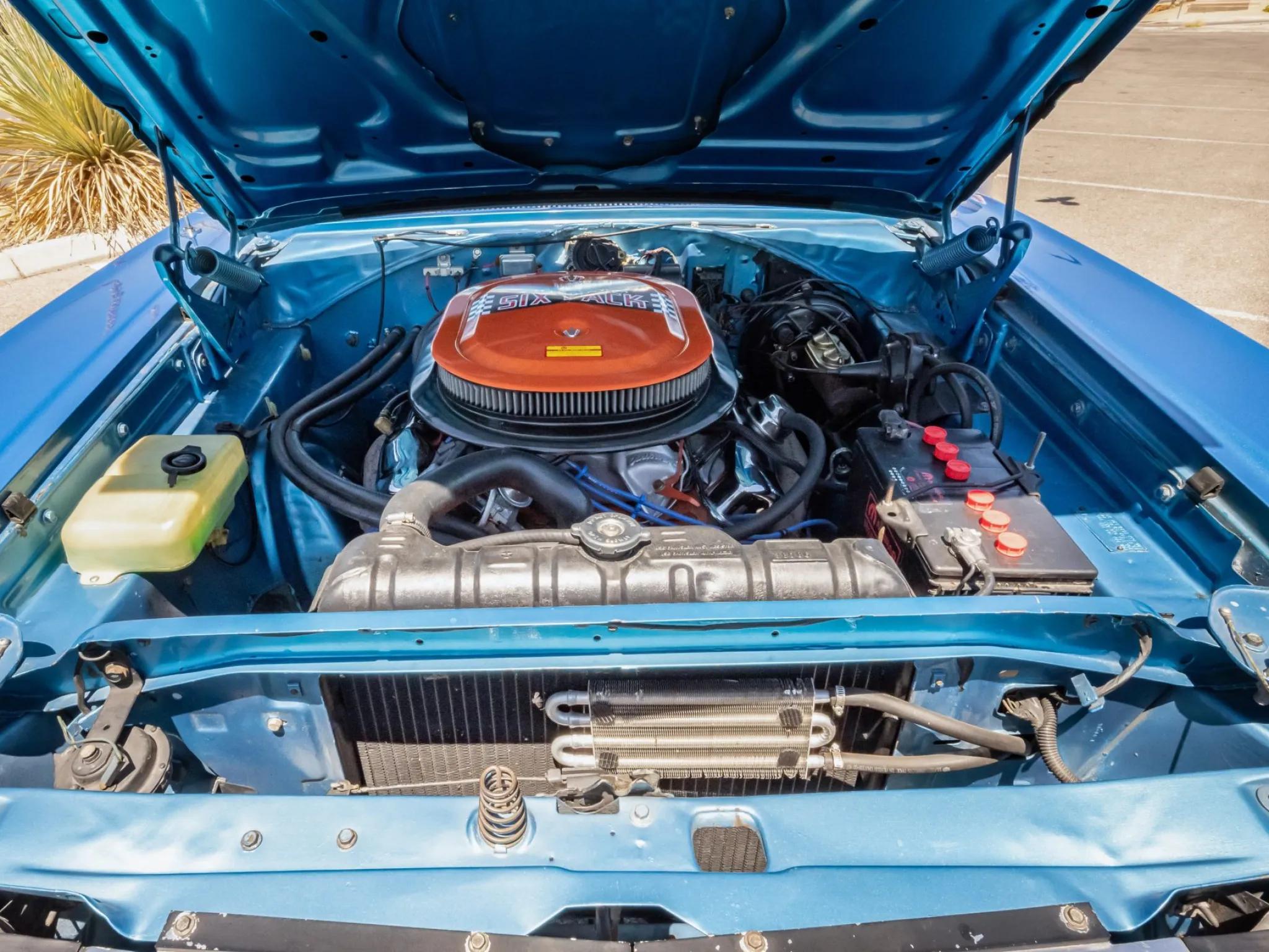 The 440ci Magnum V8 features a triple-carburetor setup and sends power to the rear wheels through a TorqueFlite three-speed automatic transmission.