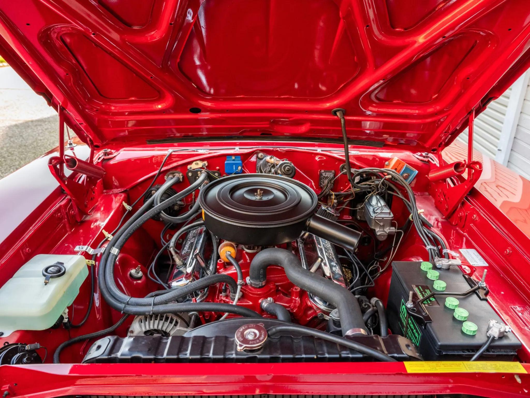 The 318ci V8 was overhauled and fitted with a mild camshaft and electronic ignition. Power is delivered to the rear wheels through a three-speed automatic transmission and a 2.76:1 open differential. The engine features a dual exhaust system with Flowmaster mufflers and was repainted in 2024.